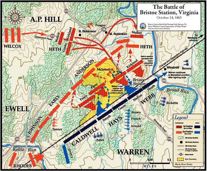 battle of Bristoe Station and to serve with distinction at the Wilderness. At